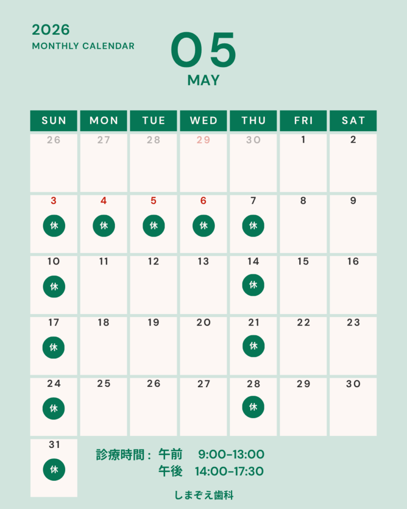 5月の診療日程は以下の通りです。
